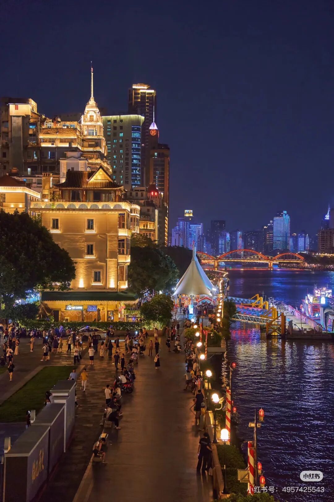 贴士:免费开放,白天鹅宾馆旁歇脚,江边风清气爽。