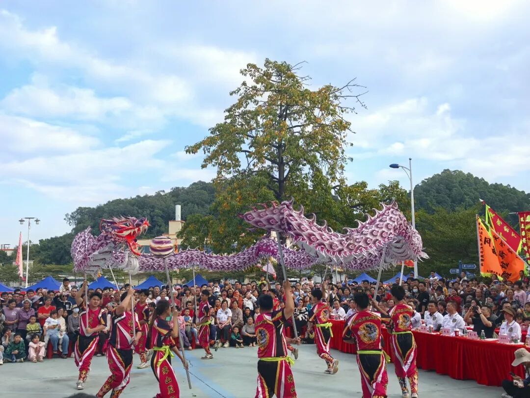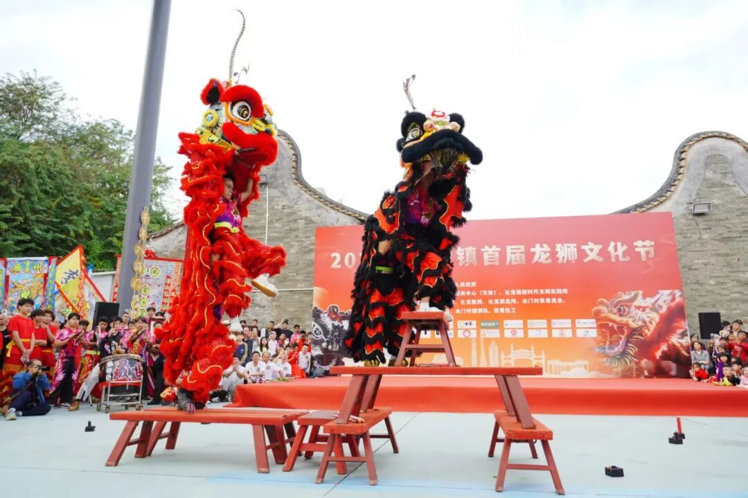 在2025年底,以醒狮队成立35周年为契机,水门村在龙狮广场举办化龙镇首届龙狮文化节,邀请了多个兄弟友好村的队伍进行表演,一共3条龙,10只醒狮,线上20余万人关注,线下人山人海,是村民“多年未见的盛景”。