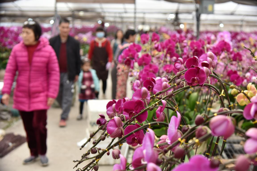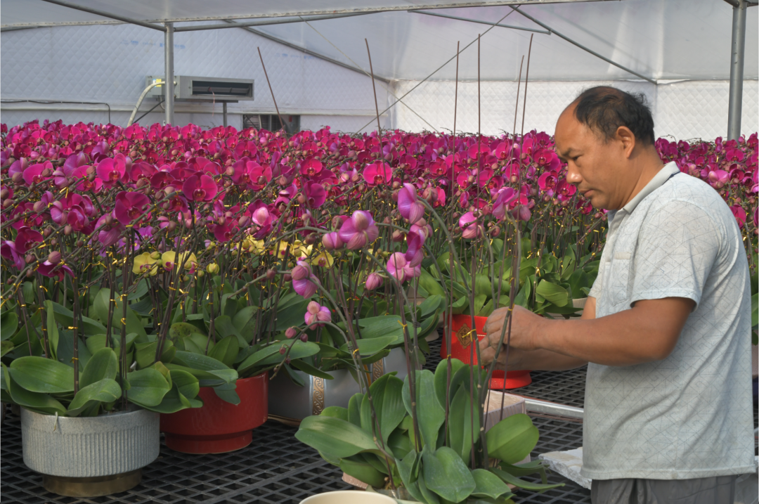 近年来,随着年宵花需求日益增长,蝴蝶兰也成为当地重要的种植品种,许多农户开始投身蝴蝶兰的培育与生产。来自明经村的广州市常裕农业有限公司种植户王常伟,已专注蝴蝶兰种植20多年,其基地面积达12亩,今年培育的蝴蝶兰达11万株。“我们今年种植的新品种中,黄金熊猫的花瓣是黄色有斑点,102是在阳光下带有细闪,米奇乐多是大舌头……”王常伟说,化龙蝴蝶兰基地的品种多样,蝴蝶兰色泽丰富,价格亲民,欢迎大家来到化龙的蝴蝶兰基地选购。