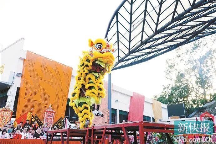 每年大年初一,贺岁巡游的醒狮队,是村里不可或缺的节目,狮队或表演、或采青,为春节增添祥和喜乐的气氛。